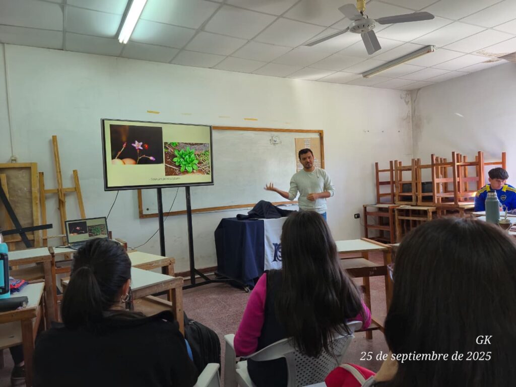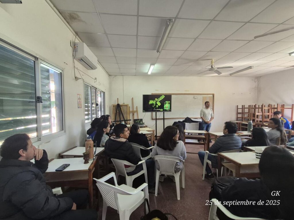 En esta oportunidad, la charla se centró en la identificación de las diferentes especies nativas que aparecen de manera espontánea en las chacras y producciones extensivas, y en sus ventajas y desventajas. Destinado al Profesorado de Educación Secundaria de Agronomía.»