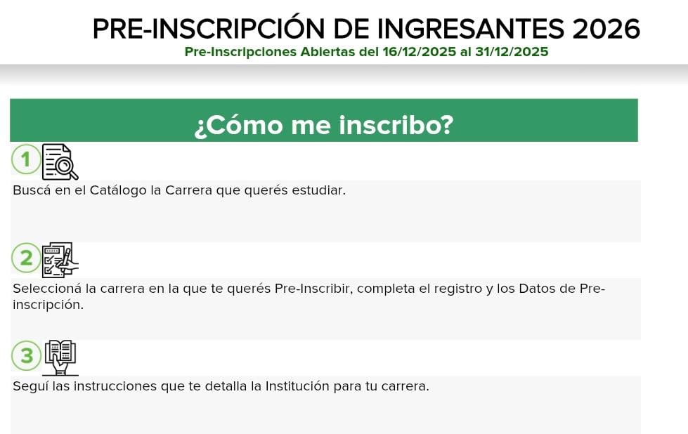 Con el fin de facilitar el acceso, se encuentra disponible el enlace de preinscripción, que se realizará del 15 al 31 de diciembre, que compartimos a través de este medio, como primer paso https://simaeducativa.mec.gob.ar/ingresantes/