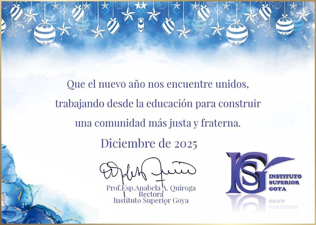 Informamos a la comunidad educativa que Instituto Superior Goya permanecerá cerrado los días 29 y 30 de diciembre de 2025. El receso institucional se extenderá hasta el 9 de febrero de 2026 inclusive. Agradecemos su comprensión. Les deseamos muy Felices Fiestas!