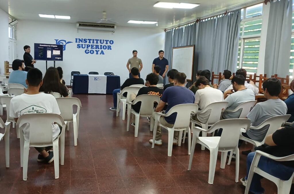 En la tarde del lunes 10 de noviembre, alumnos del instituto tuvieron una interesante charla con tres jóvenes de nuestra ciudad: Emiliano Barrios, Ignacio Gauto y Francisco Leiva, quienes están estudiando Licenciatura en Sistemas en la UNNE, junto a César Huici, de Santa Lucía y desarrollaron «Viajate», una aplicación que conecta a personas que necesitan